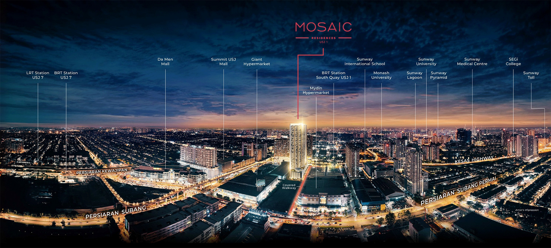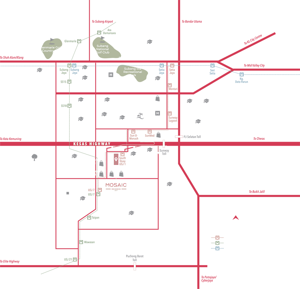 Easy access to major highways, including LDP, NKVE, Federal Highway, ELITE and KESAS